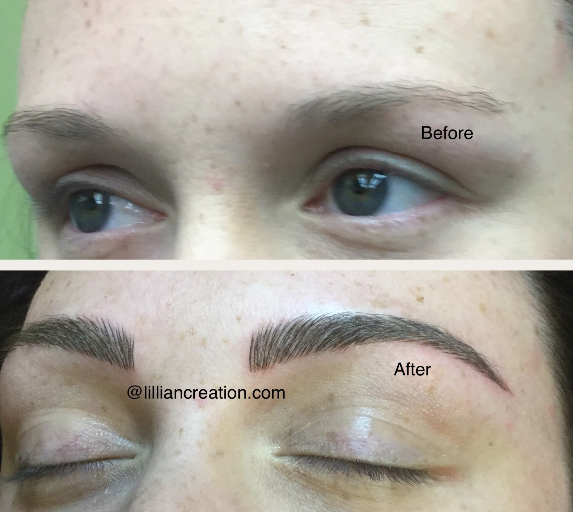 Eyebrows MicroBlading is semi-permanent with the technique using a fine blades hand tool. The more general created feather eyebrows tattooing, 3D browns, 6D effect etc. with the MicroBlading technique more natural look is achieved it aims to simulate hair strokes rather than a full shaded. The results natural and shaped fuller looking browns. Who have over plucked or sparse eyebrows hair growth can benefit greatly from eyebrows MicroBlading.